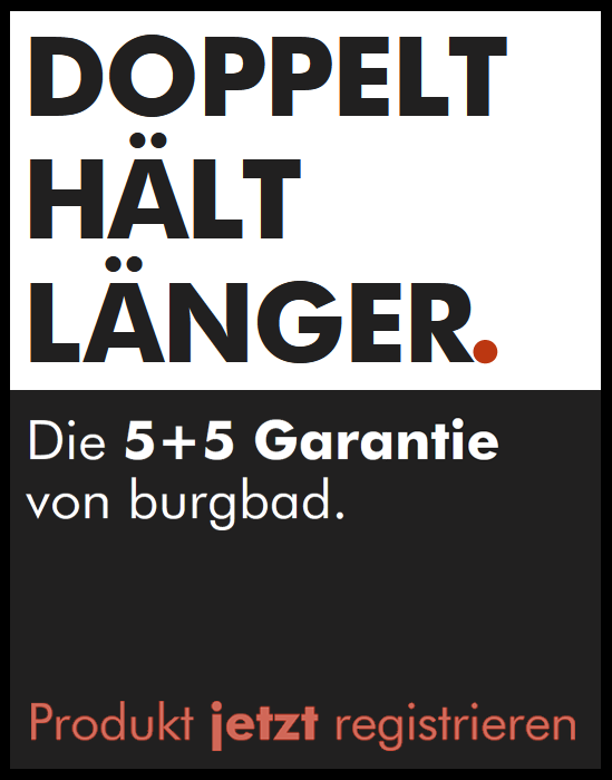 Beim Kauf von burgbad-Qualitätsprodukten erhalten Sie 5 Jahre Garantiezeit. Diese kann ganz einfach um weitere 5 Jahre verlängert werden. Ein weitere Plus für mehr Sicherheit.